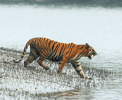 The Sundarbans is intersected by a complex network of tidal waterways, mudflats and small islands of salt-tolerant mangrove forests. The interconnected network of waterways makes almost every corner of the forest accessible by boat. The area is known for the eponymous Royal Bengal Tiger (Panthera tigris tigris), as well as numerous fauna including species of birds, spotted deer, crocodiles and snakes. The fertile soils of the delta have been subject to intensive human use for centuries, and the ecoregion has been mostly converted to intensive agriculture, with few enclaves of forest remaining. The remaining forests, taken together with the Sundarbans mangroves, are important habitat for the endangered tiger. Additionally, the Sundarbans serves a crucial function as a protective barrier for the millions of inhabitants in and around Khulna and Mongla against the floods that result from the cyclones. The Sundarbans has also been enlisted among the finalists in the New7Wonders of Nature.